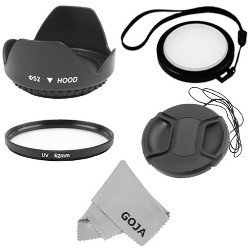 Lens Accessory Kit For 52MM DSLR Camera - Includes: Ultraviolet UV Filter + Hard Tulip Flower Lens Hood + White Balance Lens Cap + Center Pinch Lens Cap + 1 Ultra Fine Microfiber Lens Cleaning Cloth (NIKON D40 D50 D60 D80 D90 D300S D700 D3000 D3100 D5000 D5100 D7000) Review